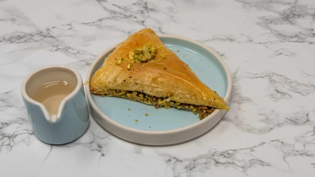 Crispy, buttery filo layers filled with pistachios and drizzled with sweet syrup