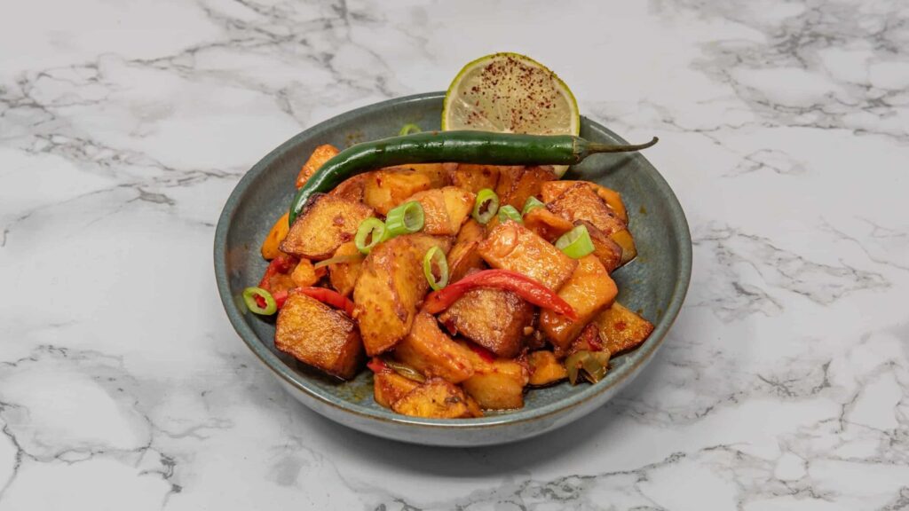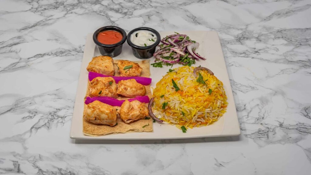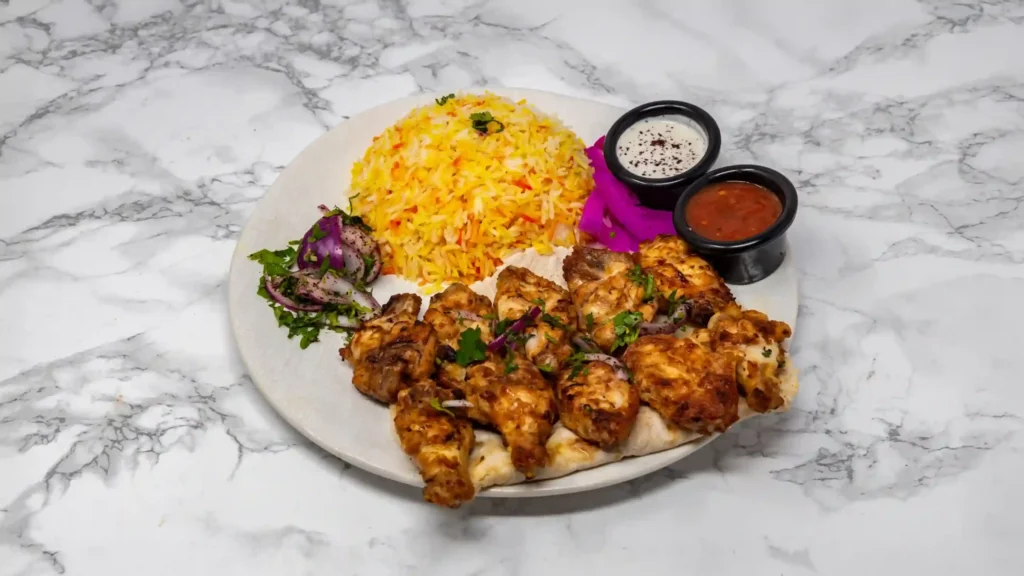 Tender chicken cubes marinated in aromatic spices and grilled to perfection