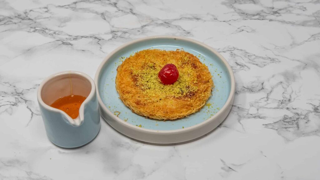 Light, crunchy kunafah layered with sweet cheese and syrup