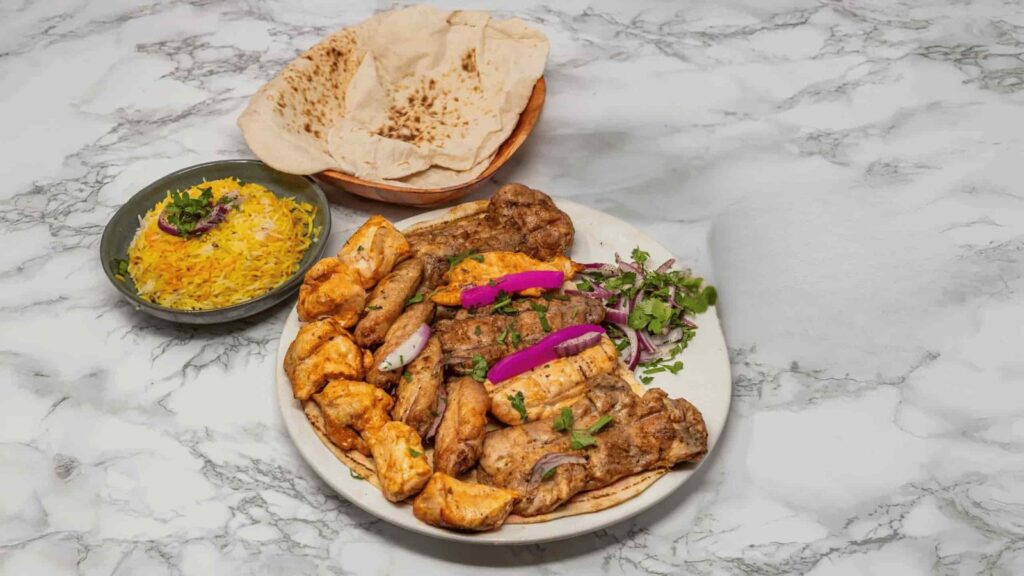Served with mixed pickles, bewaz garnish, and your choice of arabic rice, arabic bread or fries