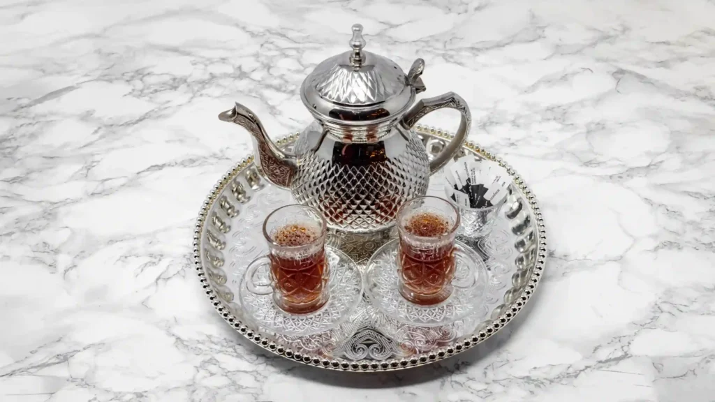 Traditional green tea brewed with fresh mint and a hint of sweetness.