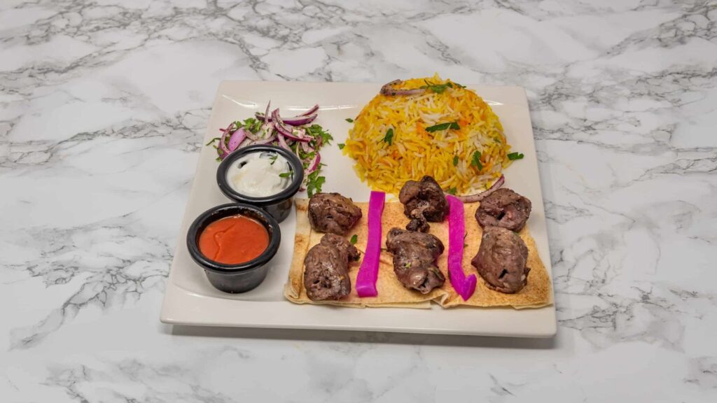 Tender charcoal-grilled lamb fillet, bursting with Syrian flavors